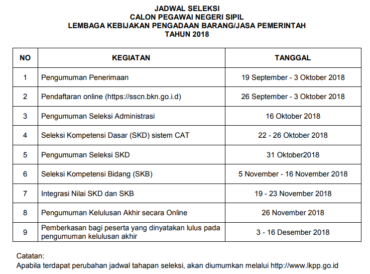 Berikut ini Jadwal Perekrutan CPNS LKPP 2018