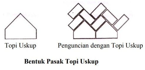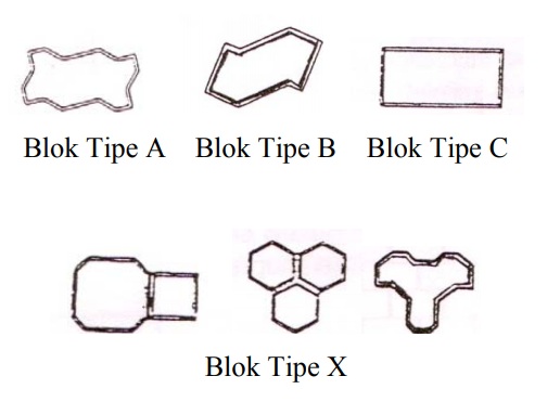 - Tulang ikan (herring bone), khususnya digunakan untuk perkerasan jalan karena mempunyai kuncian yang baik