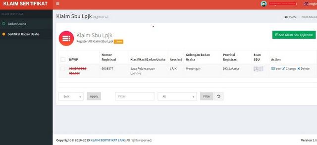 - SBU digital dan sistem online yang dibuat oleh LPJK mampu mengantisipasi pemalsuan sertifikat yang saat ini marak di lapangan. Otomatis, ketika SBU penyedia tidak muncul di sistem LPJK, maka keabsahannya patut untuk diragukan.